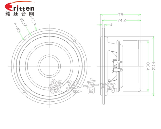 105mm30W双磁重低音HIFI音箱喇叭