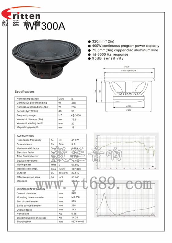 ★灵敏度(SPL):95dB(1M/1W)